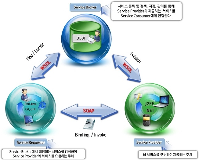 일반적으로 널리 알려진 HTTP, HTTPS, SMTP등을 사용하여 XML 기반의 메시지를 컴퓨터 네트워크 상에서 교환하는 형태의 프로토콜이다.