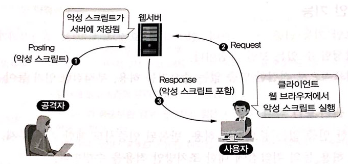 웹 페이지에 악의적인 스크립트를 포함해 사용자 측에서 실행되게 유도할 수 있는 공격 기법