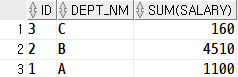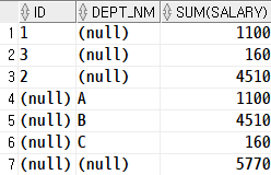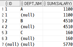 데이터를 ROLLUP, CUBE, GROUPING SET으로 출력
