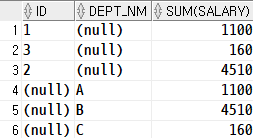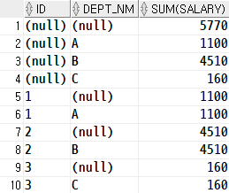 데이터를 ROLLUP, CUBE, GROUPING SET으로 출력